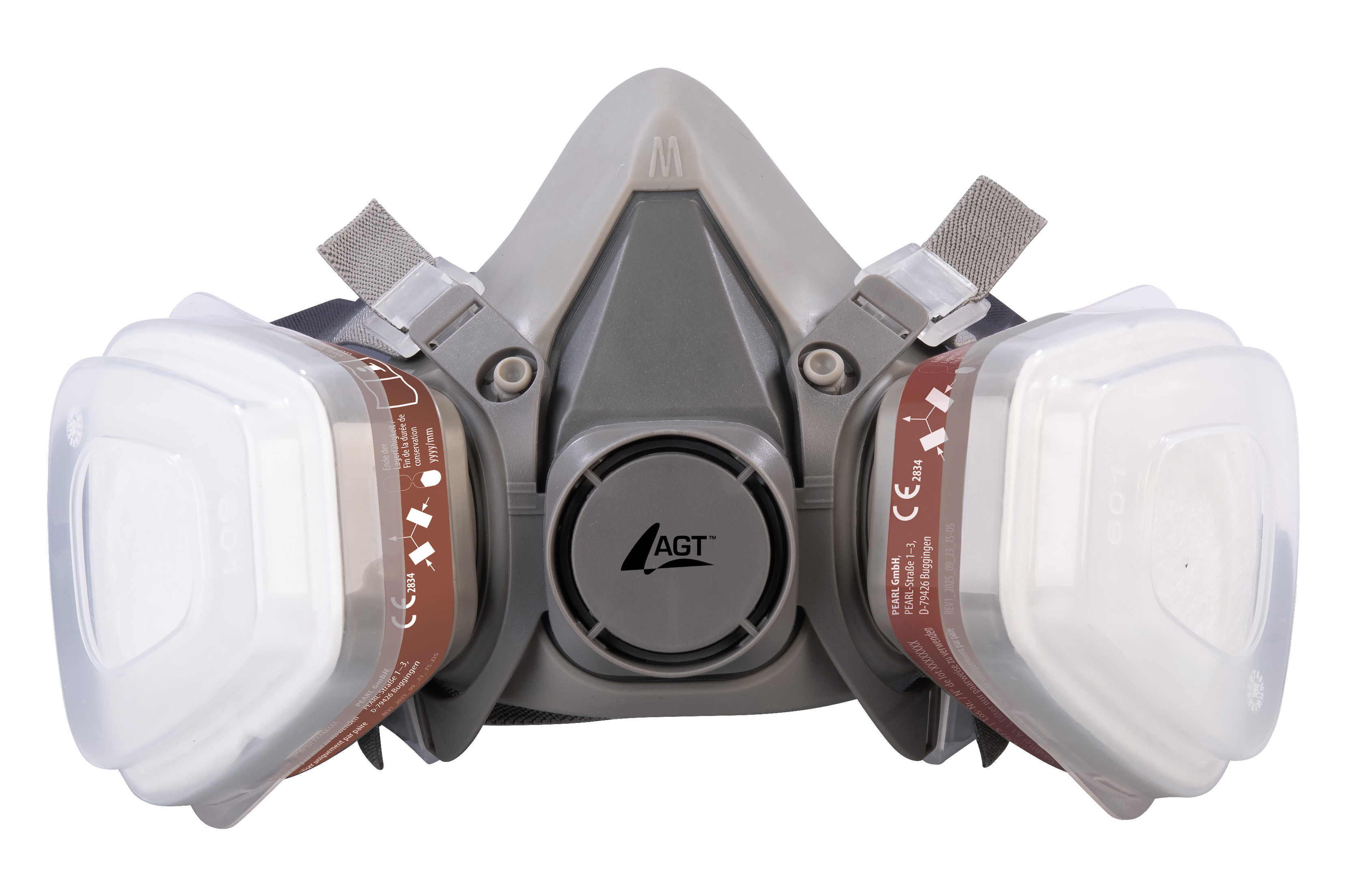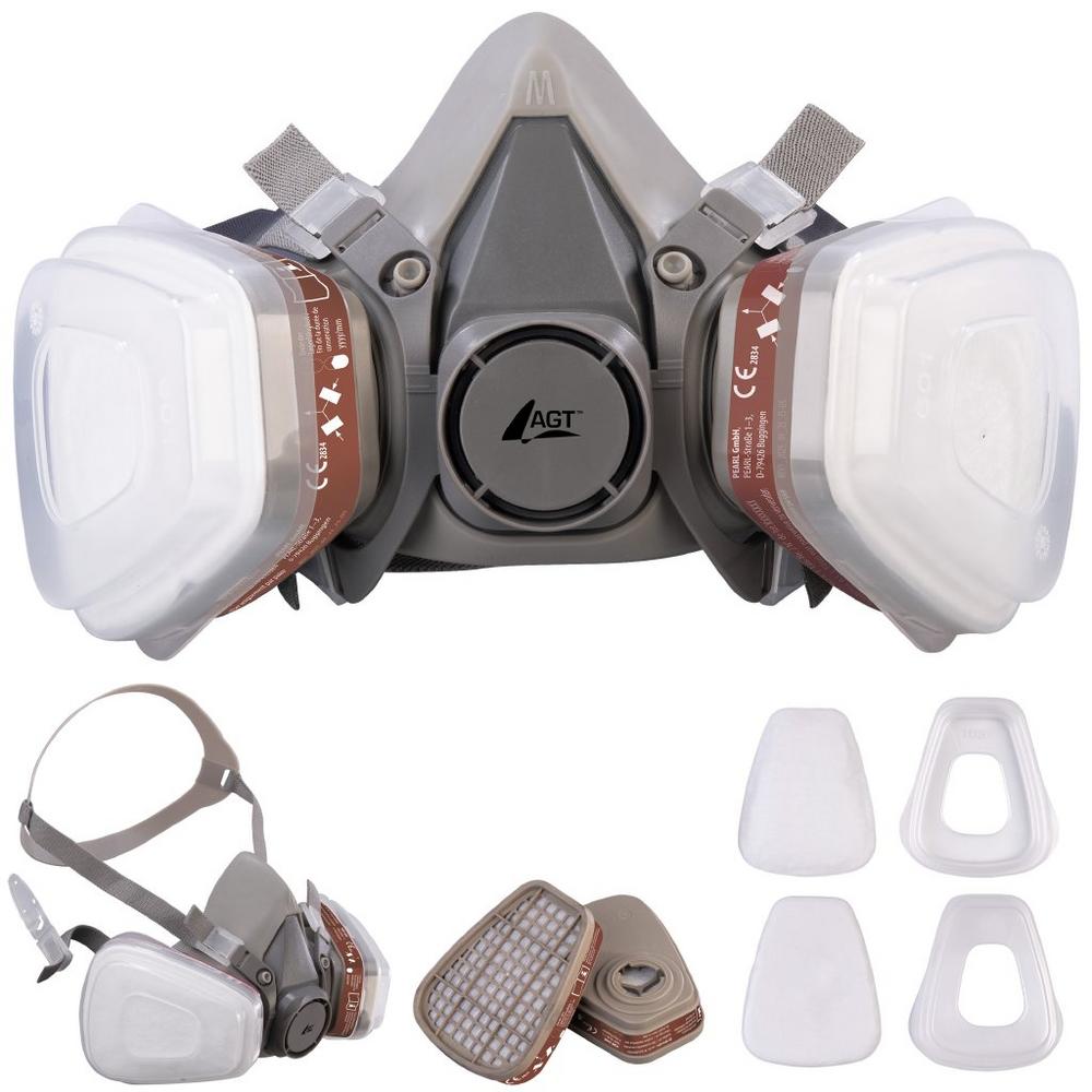 Die wiederverwendbare Atemschutzmasken AS-100 und AS-105 von AGT bedecken Mund und Nase vollständig und schützen vor Dämpfen, Partikeln, Gasen und Feinstaub. Beide Modelle werden mit jeweils zwei Gasfiltern und zwei Partikelfiltern geliefert, das Modell AS-105 zusätzlich mit Schutzbrille für den Augenschutz. Dank austauschbarer Filter sind die Masken langlebig und nachhaltig im Einsatz. Die Produkte eignen sich für Handwerker, Heimwerker und Hobby-Arbeiten und entsprechen der Verordnung für Persönliche Schutzausrüstung (PSA).