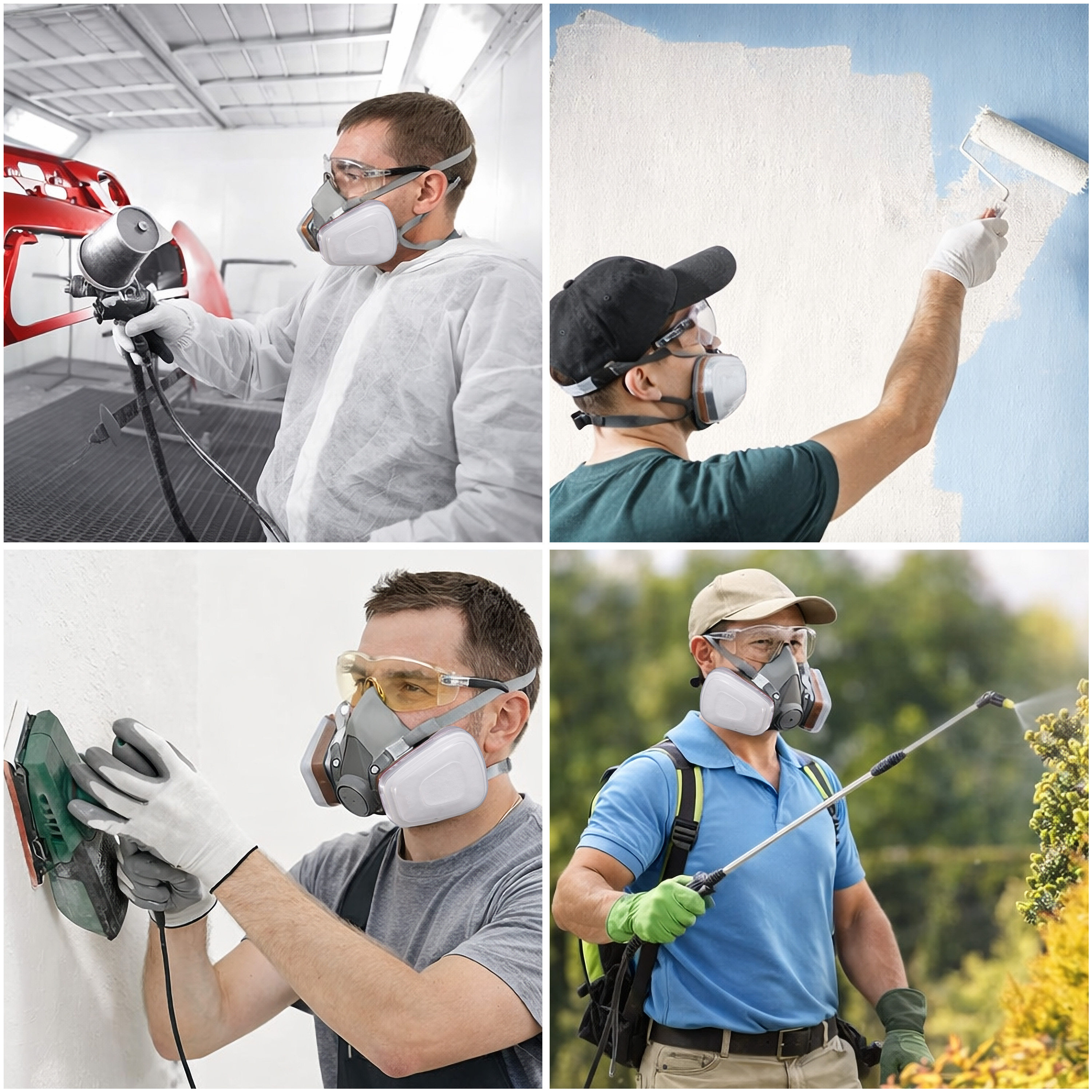 Die Atemschutzmaske bietet zuverlässige Filterung gegen Gase, Staub und feine Partikel. Sichere Atemluft beim Schleifen, Lackieren oder bei Arbeiten mit Lösungsmitteln ermöglicht konzentriertes Arbeiten ohne gesundheitliche Beeinträchtigung.