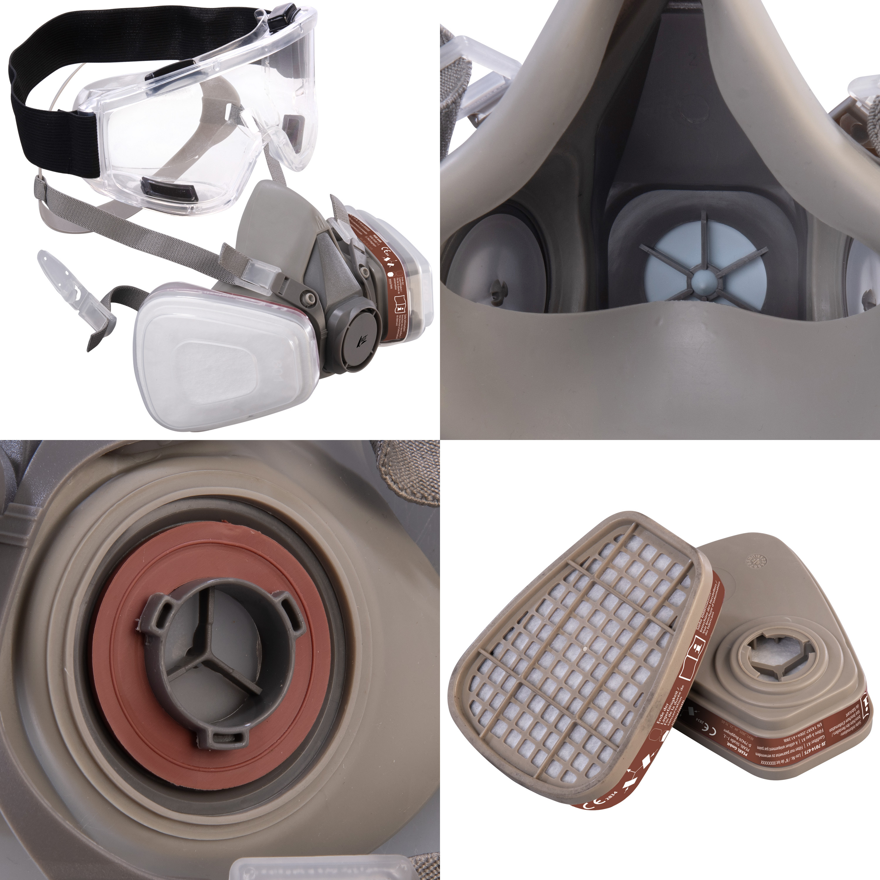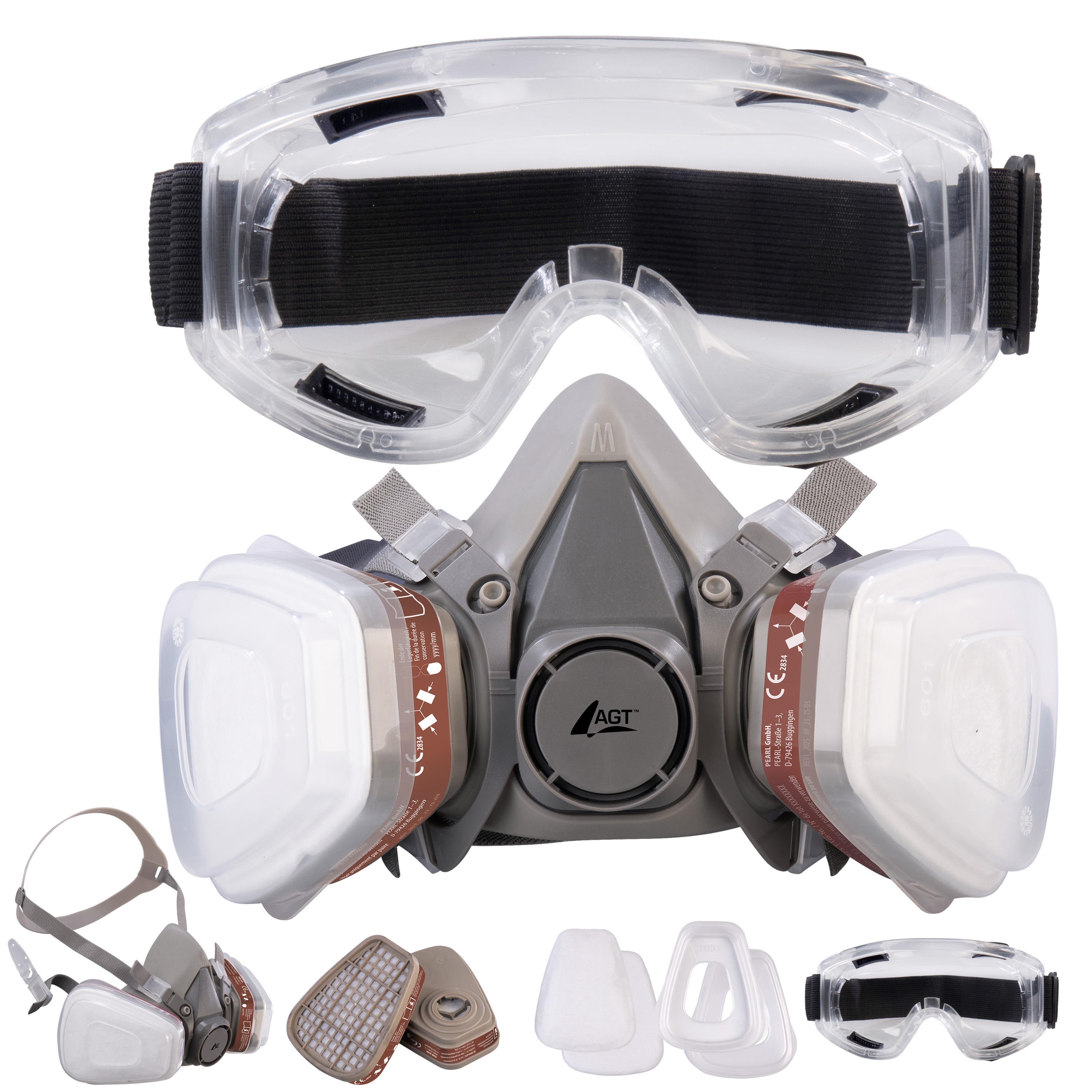 AGT Atemschutzmaske AS-105 mit Schutzbrille mit je 2 Gas- und Partikelfiltern
