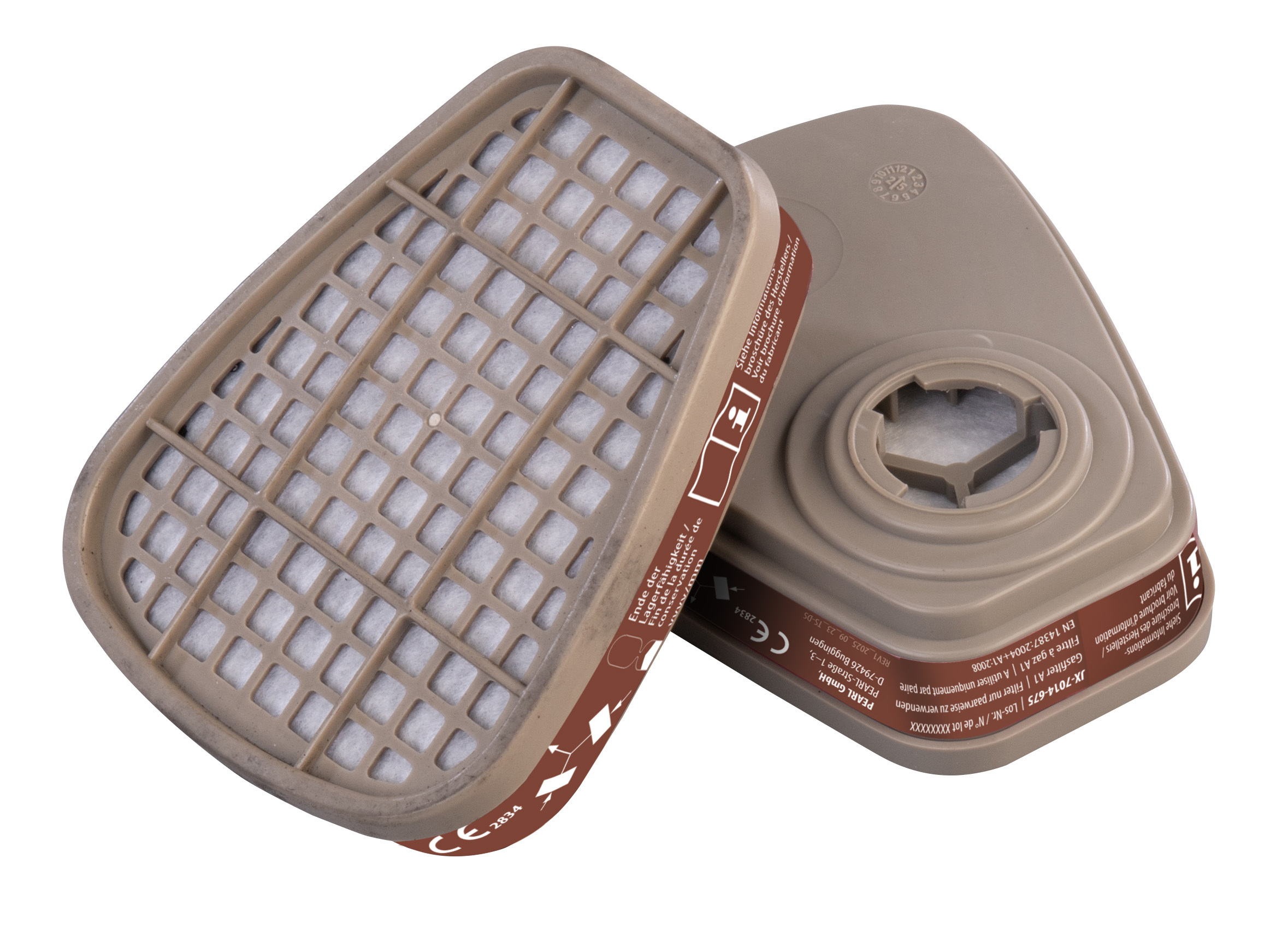 • Filter A1P2: Gasfiltertyp/-Klasse A1 und Partikelfiltertyp/-Klasse P2.