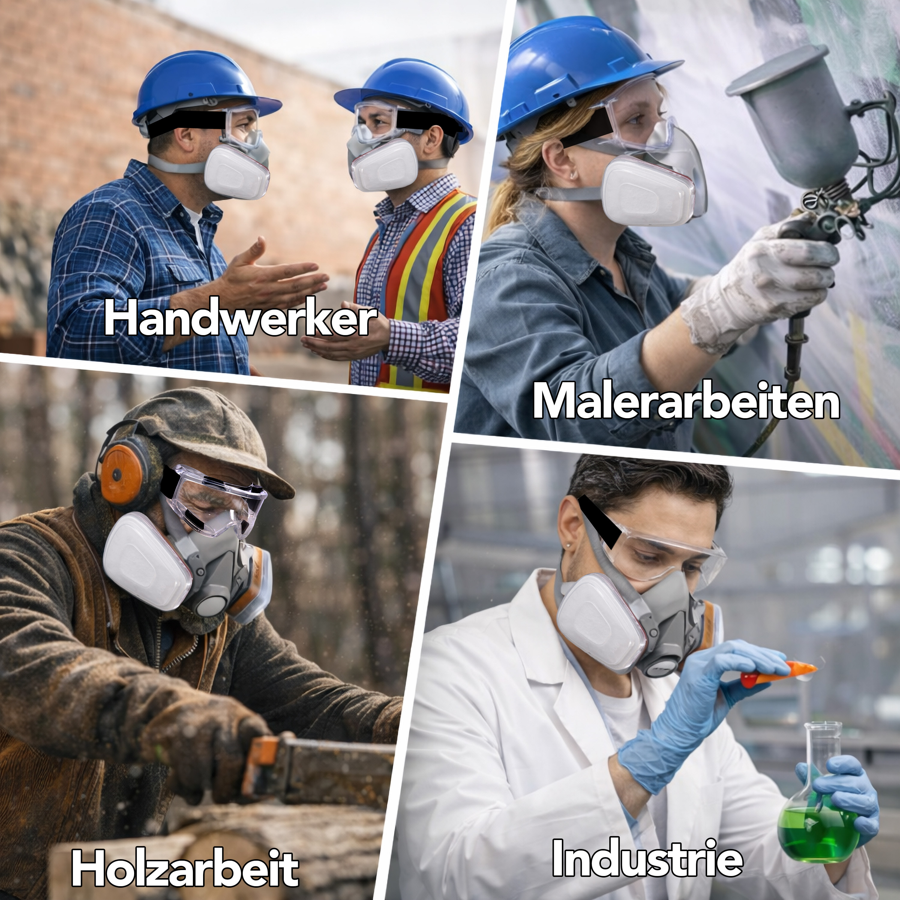 • Vielseitig nutzbar: schützt vor Dämpfen, Partikeln, Gasen, Feinstaub und mehr