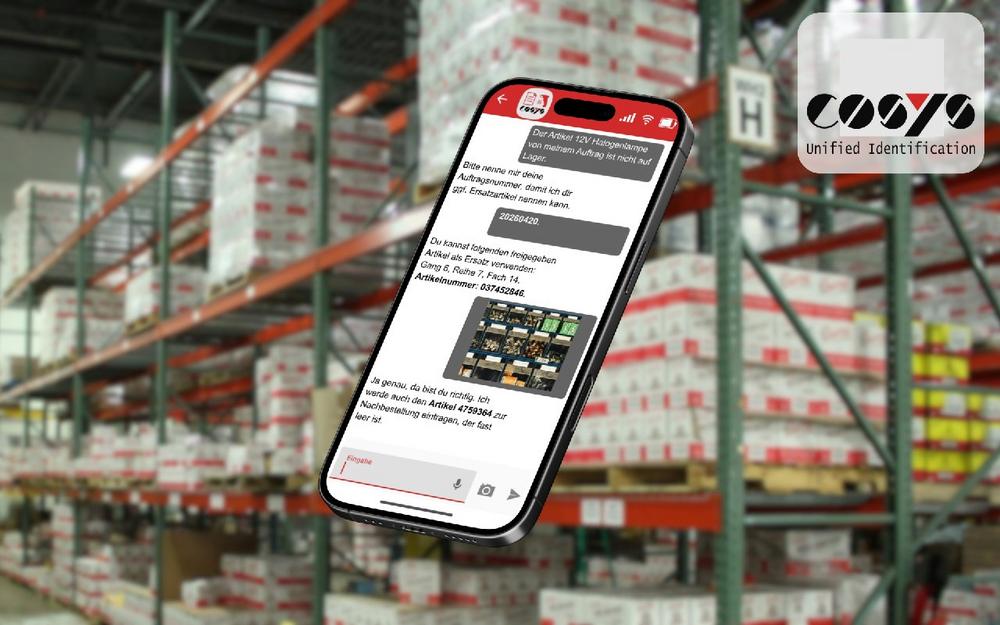 Die COSYS KI ermöglicht es Mitarbeitenden, Fragen zu Artikeln oder Aufträgen direkt über ihr Gerät zu stellen. Anstatt lange in Systemen zu suchen oder Kollegen zu fragen, erhalten sie sofort eine verständliche Antwort. Dabei kann es sich um typische Fragestellungen handeln wie den aktuellen Lagerort, alternative Lagerplätze, offene Aufträge oder den Status einer Lieferung. Auch weiterführende Informationen wie Bewegungen eines Artikels oder Zusammenhänge zwischen mehreren Aufträgen können schnell dargestellt werden.