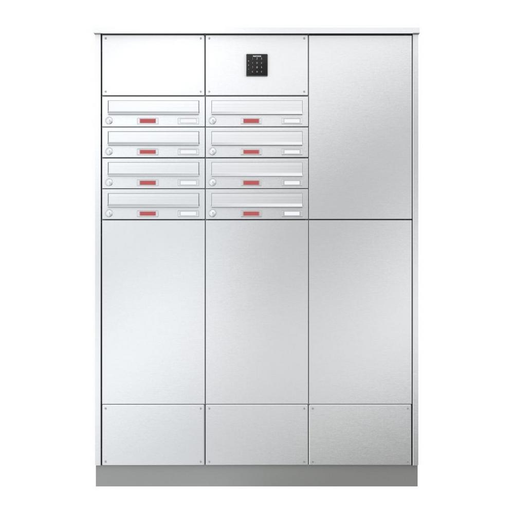 Paketanlagen werden auf das jeweilige Objekt abgestimmt geplant. Unterschiedliche Fachgrößen, Kartenleser, Türöffner oder Informationsmodule können integriert werden. Über einen digitalen Konfigurator lassen sich verschiedene Kombinationen aus Paketbox, Briefkastenanlagen und Zusatzfunktionen abbilden.