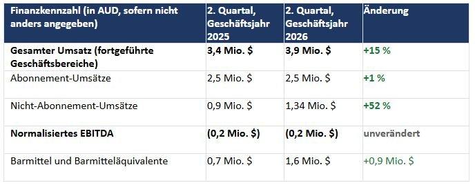 In Verbindung mit der angepassten Kostenbasis, den wachsenden Unternehmens- und Nexus-Pipelines sowie den Optionen im Bereich der nicht zum Kerngeschäft gehörenden Assets geht das Board davon aus, dass das Unternehmen ab dem dritten Quartal des Geschäftsjahres 2026 einen Cashflow generieren wird – die Prognose bleibt unverändert.