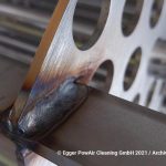 Seit Generationen von Edelstahl-Verarbeitern ist das Auftreten der ANLAUFFARBE ein alltägliches Problem. Anlauffarben entstehen bei der Herstellung von Industriemaschinen und Industrieanlagen. Durch die Hitze bei den Schweißvorgängen verfärbt sich der Edelstahl und läuft bläulich an. Das ist weiter kein Problem Mehr