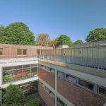 KLEUSBERG hat ein bestehendes Universitätsgebäude durch eine eingeschossige Aufstockung in moderner Holzbauweise erweitert. Auf rund 630 m² Bruttogrundfläche entstanden neue Büroflächen in unterschiedlichen Zuschnitten sowie zentral angeordnete Sanitärbereiche, die über das vorhandene Treppenhaus erschlossen werden. Das architektonische Erscheinungsbild der Erweiterung Mehr