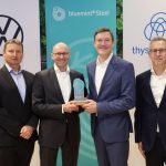 . thyssenkrupp Steel and Volkswagen Group sign a MoU for the supply of CO₂-reduced steel from the future direct reduction plant. The use of bluemint® Steel will support Volkswagen Group in reducing CO₂ emissions in the supply chain (Scope 3) and Mehr