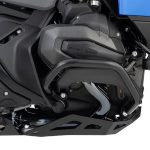 Auch bei diesem Motorschutzbügelkonzept stand neben der maximalen Schutzwirkung auch die maximale Schräglagenfreiheit im Vordergrund. Durch die Geometrie des kompakten, vierteiligen Schutzbügels werden Zylinder, Ventildeckel und damit der Boxermotor zuverlässig geschützt. Der maßgeschneiderte Schutzbügel schmiegt sich eng an und gewinnt Mehr