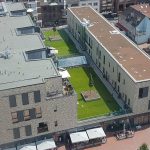 A lawn for playing and sunbathing in the centre of the town and on a rooftop too. How is that done? As part of the conversion to a modern residential and commercial property, the former Hertie department store was given Mehr